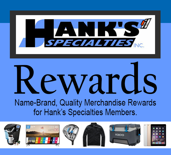 Welcome to Hank's Specialties Rewards, your destination for name-brand merchandise rewards exclusively for Hank's Members.